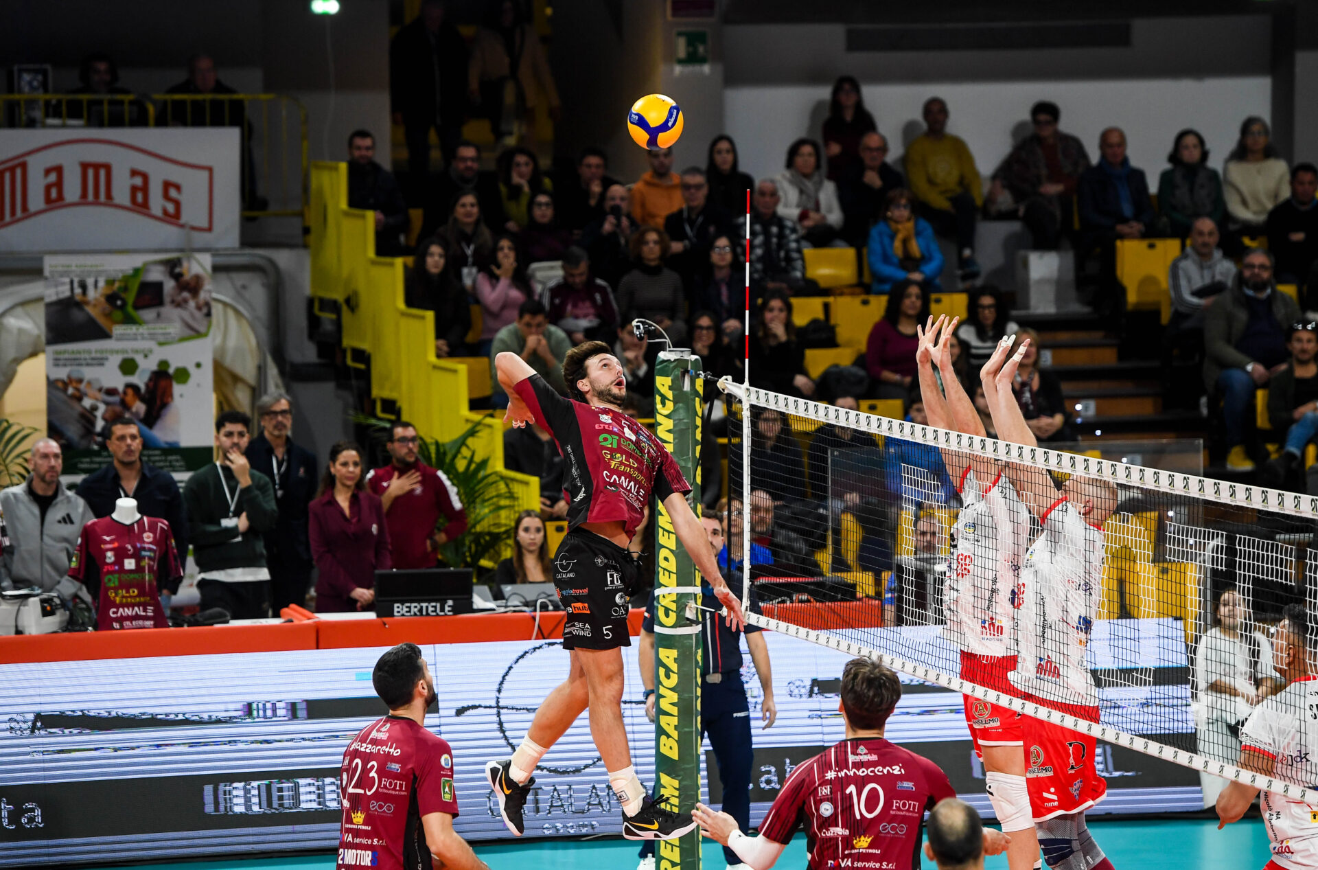 I calabresi prendono fiducia anche nel terzo set: Guarienti, Presta e Lazzaretto guidano l’allungo dal 4-4 al 10-6. Laganà incide anche al servizio, la difesa biancorossa fatica e Reggio Calabria prende il largo fino al 25-16.